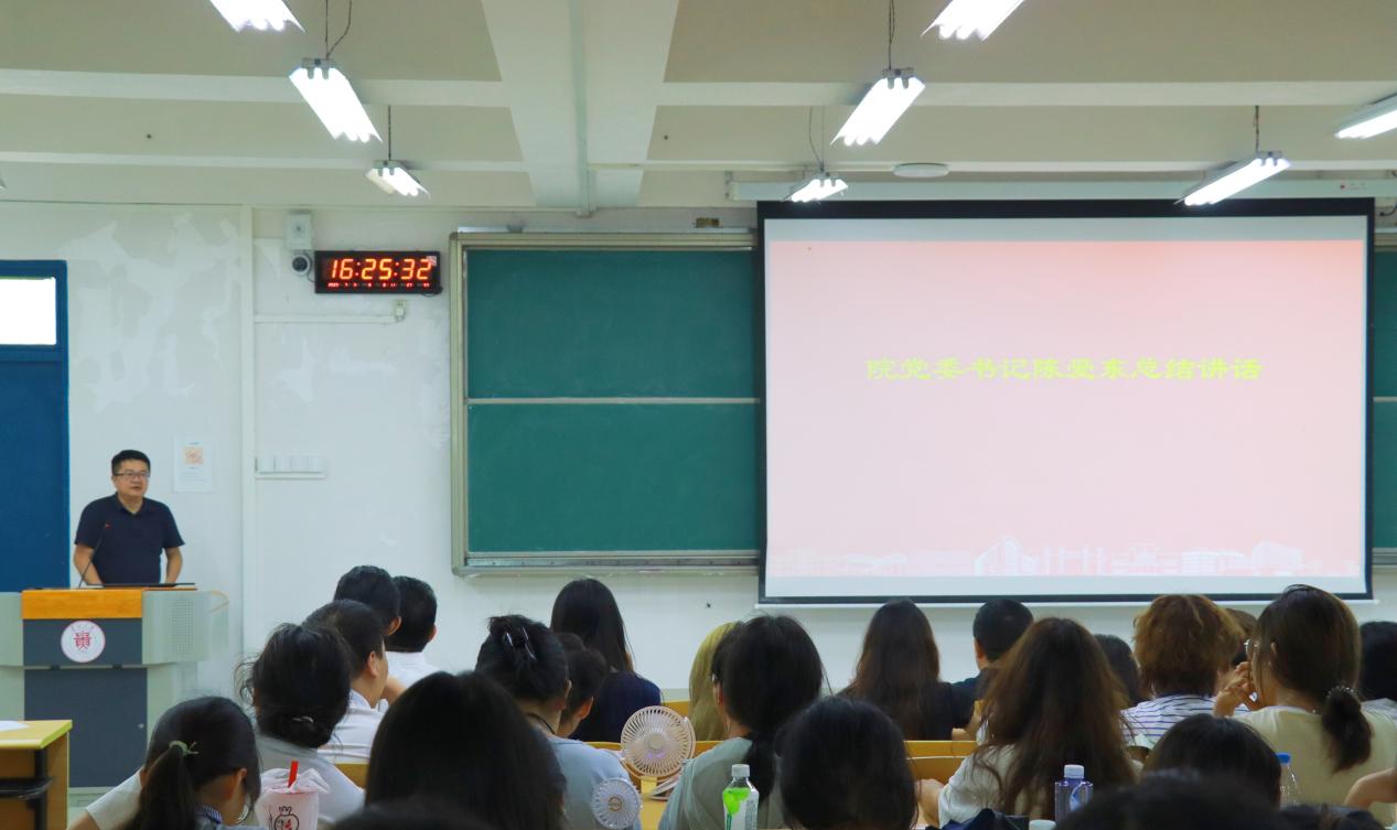 陈爱东做总结讲话。他表示,同学们既要脚踏实地,又要志存高远。他提出三点期望,同学们要胸怀理想,细化目标,也要制定切实可行的行动计划,保持恒心毅力,更要培养独立自主的学习能力,“干”字当头,在实践中增长才干。