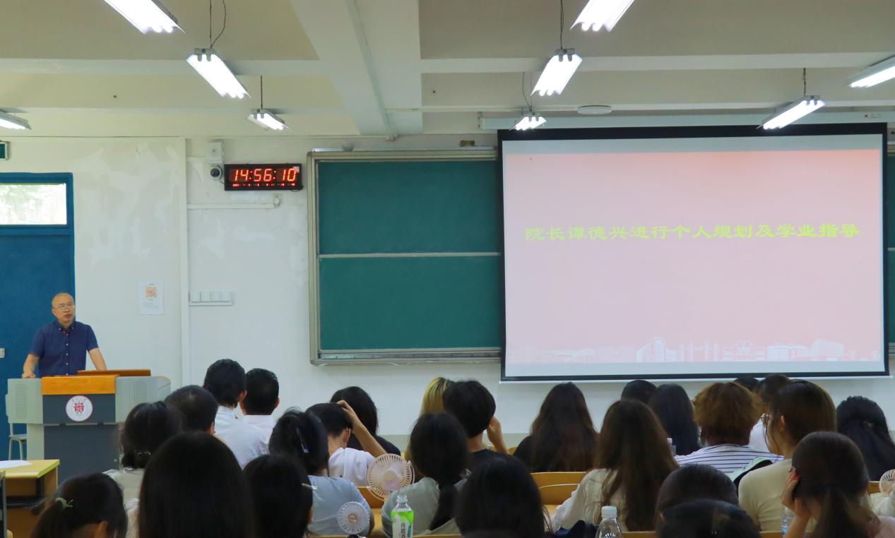 谭德兴就学业规划与个人发展作专题指导。他指出,面对短暂的大学时光和严峻的就业形势,同学们应当把握当下,夯实“能记、能写、能研”三项基本功。要及早确立发展目标,主动与老师沟通交流,用科学的学习方法提升学习效能。同时鼓励同学们积极参与科研项目,在实践中锻炼综合能力。