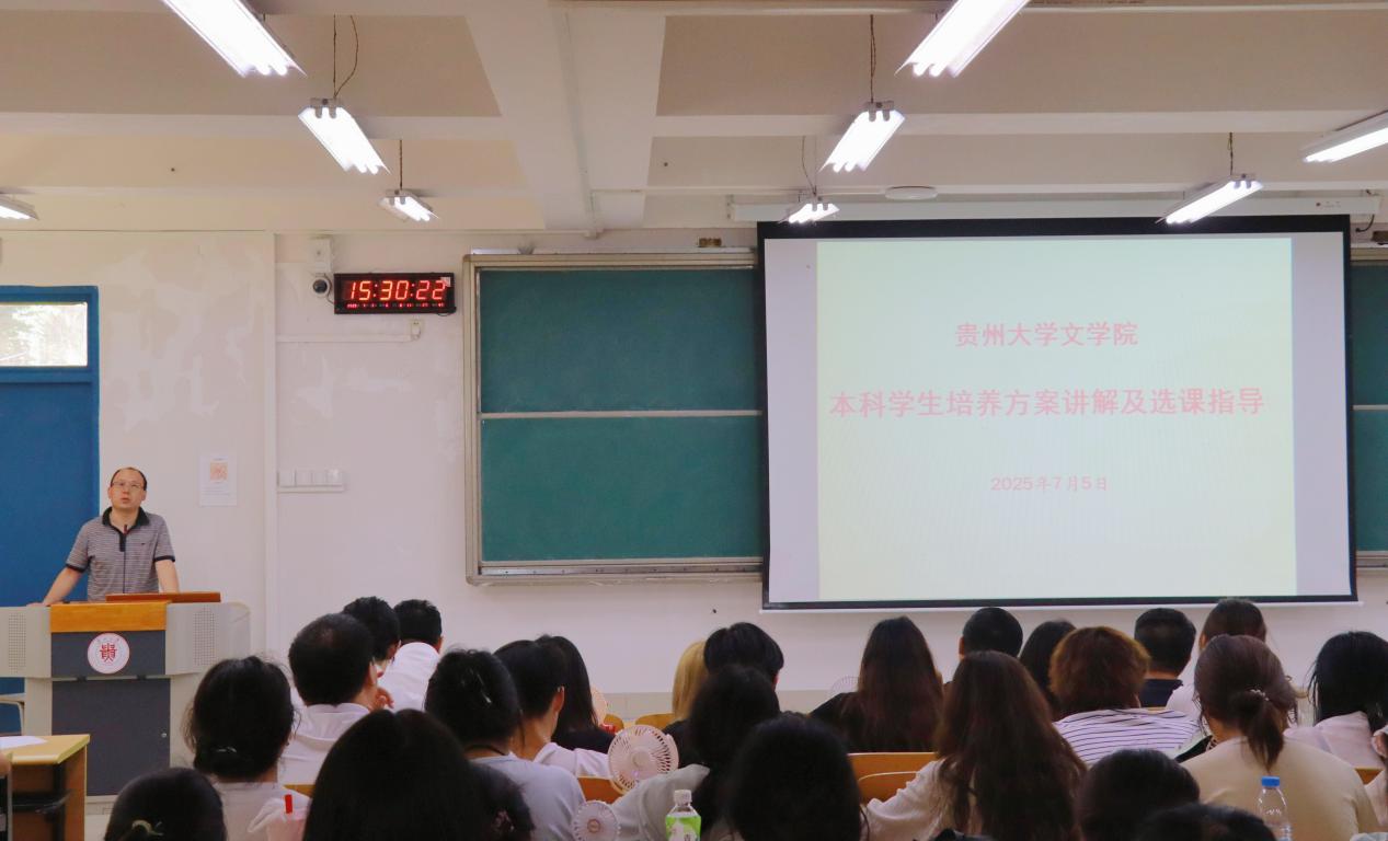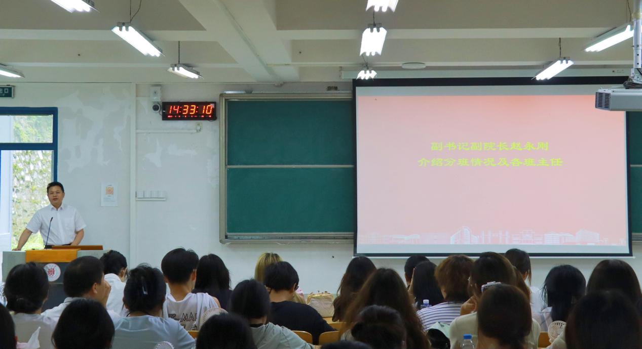 赵永刚首先宣布了2024级本科生分班及班主任配备情况。汉语2401至2404班班主任分别由陈爱东老师、陈佳璐老师、陈国辉老师和杨媛老师担任。赵永刚在讲话中强调,贵州大学拥有深厚的文化底蕴和雄厚的师资力量,勉励学生要坚定专业自信,珍惜学习机会。