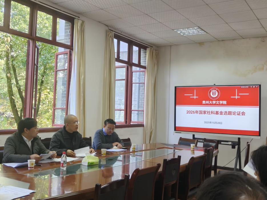 为切实推进mk官网入口2026年国家社科基金项目申报工作,提高教师科研能力,mk官网入口于2025年10月28日在人文楼204会议室召开选题论证会。贵州大学mk官网入口院长谭德兴、贵州大学音乐学院副院长杨胜兴、mk官网入口教师彭兴滔作为指导专家出席,mk官网入口所有拟申报2026年度国家社科基金项目的教师参加会议。